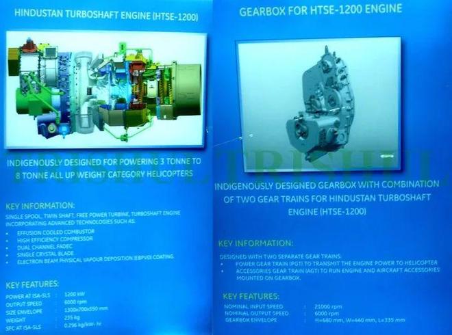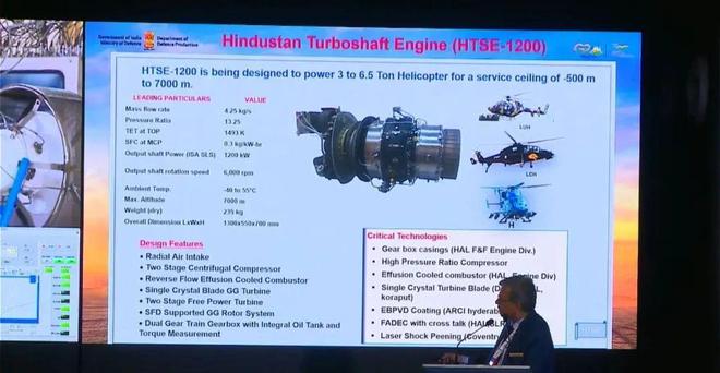 HTSE-1200涡轴发动机长1.3米,宽0.55米,高0.7米,质量流量4.25千克/秒,压力比11.2,涡轮入口温度1493K,轴功率输出1200千瓦,燃油消耗率(SFC)0.293千克/千瓦时,设计海拔高度7000米,目前原型机的工作海拔高度最高6100米,轴转速6000转/分钟(RPM),环境温度范围-50°C至+55°C。该发动机的模块化设计允许轻松更换关键部件,确保了维护简便性和更长的使用寿命。HTSE-1200配备了全权限数字发动机控制系统,允许飞行员和地勤人员实时监控发动机性能,提供可用于微调直升机性能或预先解决潜在问题的关键数据。印度人宣称HTSE-1200发动机的模块化设计将使其能够配置用于不同级别的直升机,在包括运输、侦察、通用和作战在内的任务配置中提供更大的灵活性。