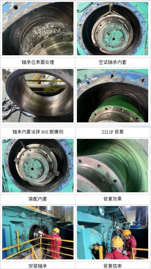 保证预紧量、同心度、轴承游隙等重要安装参数。实现高分子复合材料恢复设备尺寸的目的,再造轴承位,修旧利废。
