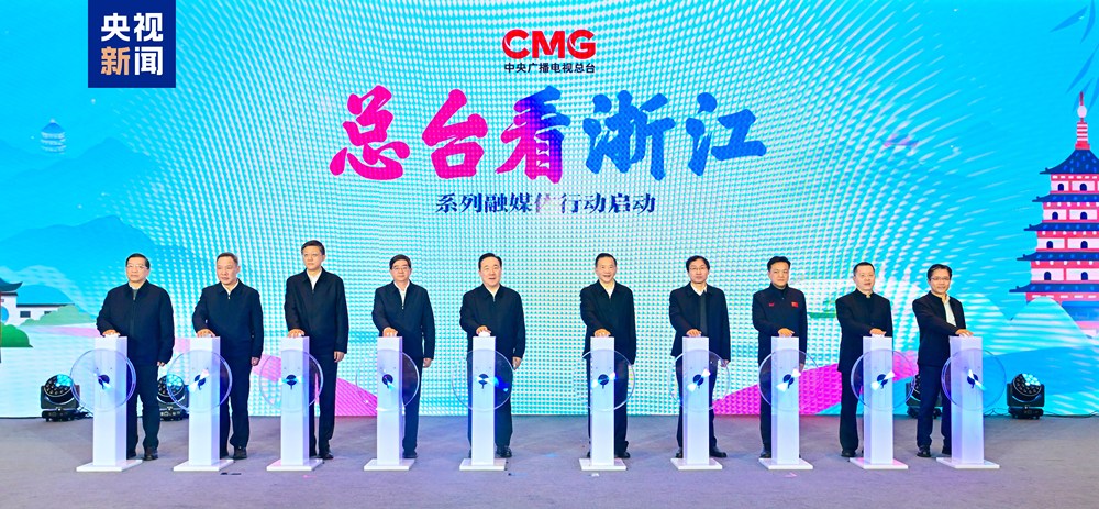 2月4日,中央广播电视总台“总台看浙江”系列融媒体行动在杭州启动。浙江省委书记、省人大常委会主任王浩,中宣部副部长、中央广播电视总台台长慎海雄在活动上致辞,并与浙江省委常委、秘书长邱启文,浙江省委常委、杭州市委书记刘非,浙江省副省长李岩益,总台编务会议成员周振红,浙江省委宣传部常务副部长来颖杰等共同启动“总台看浙江”系列融媒体行动。