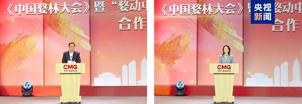 △总台视听新媒体中心副召集人许文广、中国外文局当代中国与世界研究院品牌总监袁林现场推介