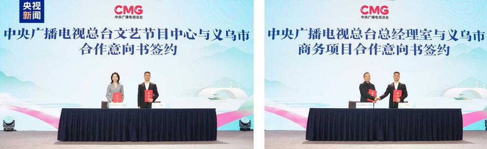 活动现场,总台文艺节目中心、总经理室分别与义乌市签署合作意向书。总台强大的媒体资源将与义乌的活力市场深度融合,义乌“买全球、卖全球”的商业基因也将为“总台看浙江”注入更多国际传播新内涵。