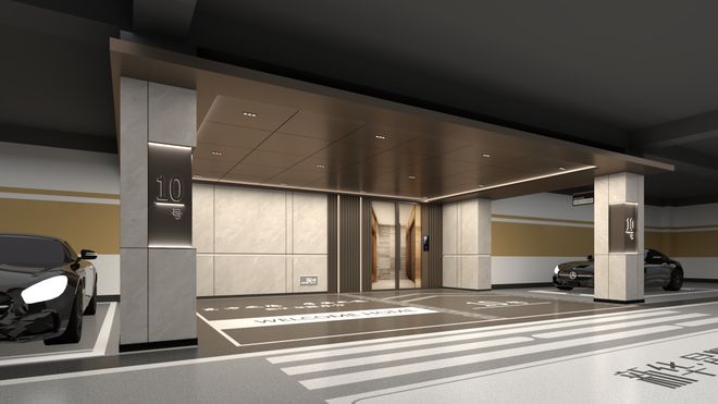 入口对行人、机动车进行优化分流,保障业主安全;而地面停车位,方便参观者、业主等临时停车的需求。另外在车库上,项目还打破了常规地库的单调、晦暗。直接将豪车专属的星空顶搬入了地库里。从车行驶入地库的那一刻开始,一场名为“宏大”的归家之旅就开始了。通道入口,顶部优雅的星空放射灯,展现出浩瀚星空般的深邃、璀璨,搭配两侧的高级铺面材质,尽显奢华气质。