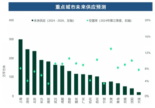 租金仍呈现下跌趋势,以价换量仍为市场主流。由于市场供大于求局面愈发显著,企业对租金折扣高度敏感,2024年以来全国主要城市的租金普降,且整体降幅不断扩大。