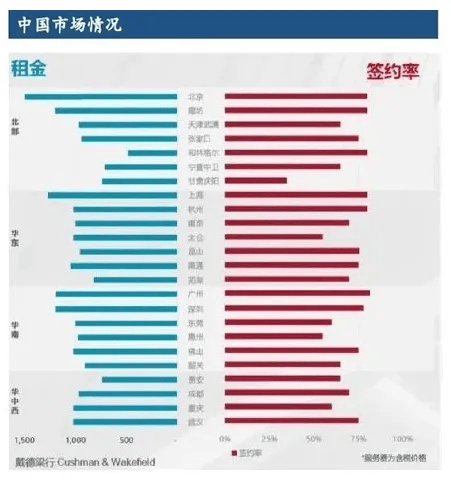 •华北地区:北京和华北其他城市租金形成较大梯度。第一梯度为北京,按每KW含电的模式服务费为1,050-1,500/月/kw;第二梯度为河北各城市与天津,租金集中在860-1,270元/月/kw。华北地区签约率均在60%-80%。
