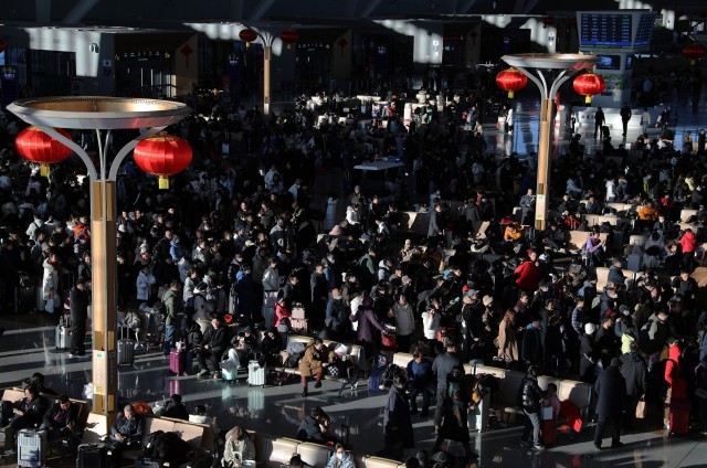 2月2日,北京朝阳站,阳光照进候车大厅,旅客正在等待检票乘车。中青报·中青网记者 陈剑/摄